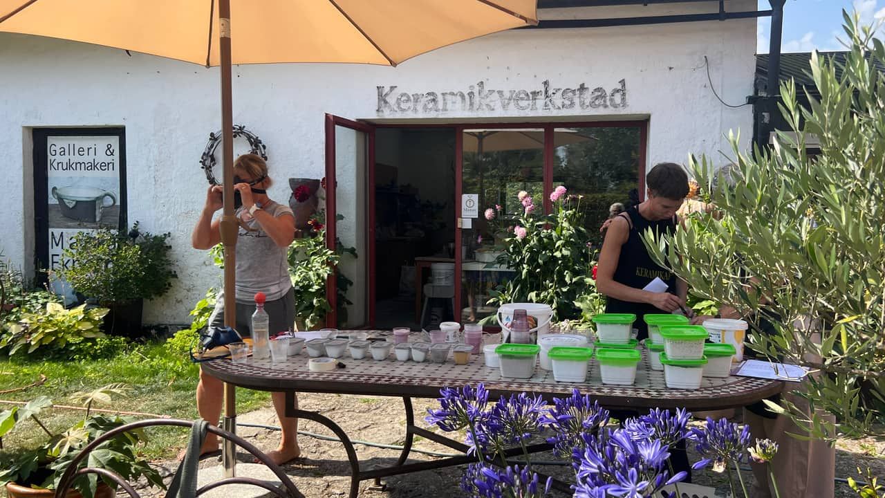 Workshopen hålls i krukmakeriet på Österlen och genomförs när en mindre grupp är samlad.